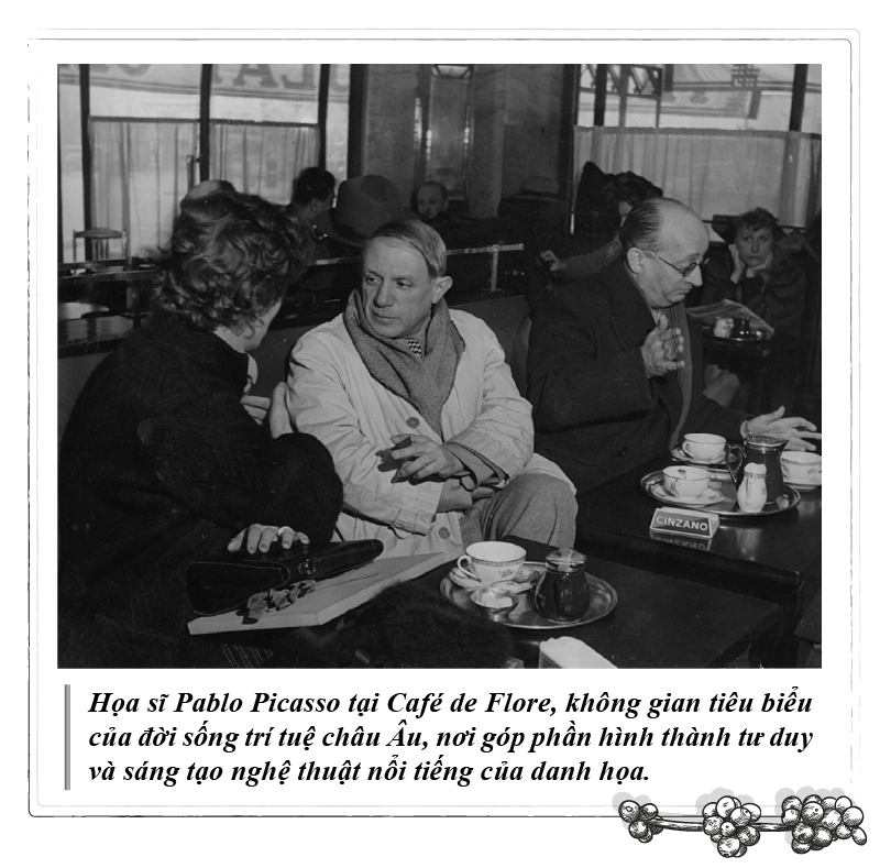 Trong bối cảnh ấy, hàng quán cà phê với đặc tính mở, đón nhận mọi đối tượng và tự do tranh luận, trở thành địa điểm đáng tin cậy của người châu Âu, đặc biệt là giới tri thức, những cá nhân mang tinh thần tự do tư tưởng, khát vọng phản tỉnh và ý thức kiến tạo bản thân. Những nhân vật đại diện tiêu biểu cho trí tuệ thời đại như Picasso hay Ernest Hemingway đều dành hàng giờ tại quán cà phê, quan sát đời sống, đối thoại và từng bước hình thành lập trường tư duy cũng như phong cách sáng tạo độc đáo, đậm dấu ấn cá nhân.