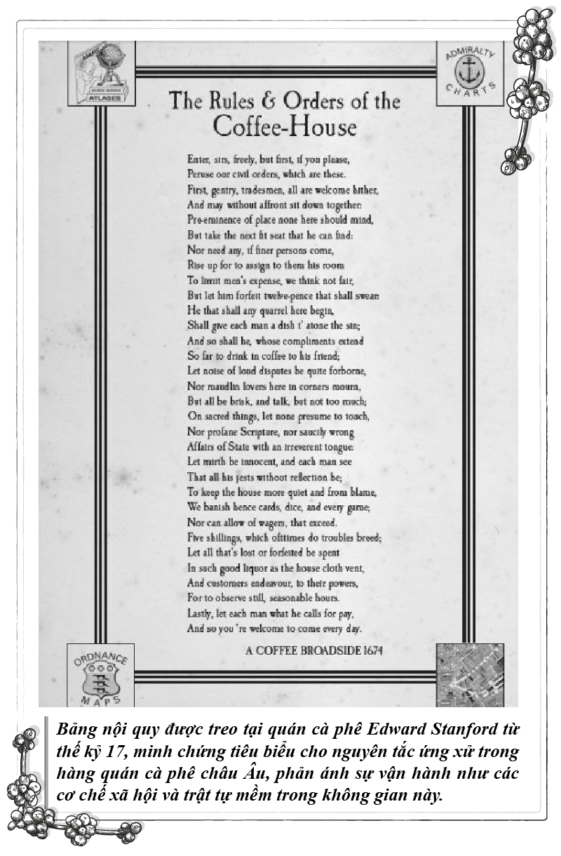 Đến khi quán cà phê trở thành một phần của đời sống xã hội châu Âu, các nguyên tắc này tiếp tục được điều chỉnh linh hoạt theo từng bối cảnh văn hóa. Quá trình này góp phần củng cố hàng quán cà phê như một không gian xã hội đặc thù, nơi sinh hoạt trí tuệ mang tính cấu trúc, trật tự đối thoại và các chuẩn mực xã hội được hình thành thông qua thực hành thường nhật.