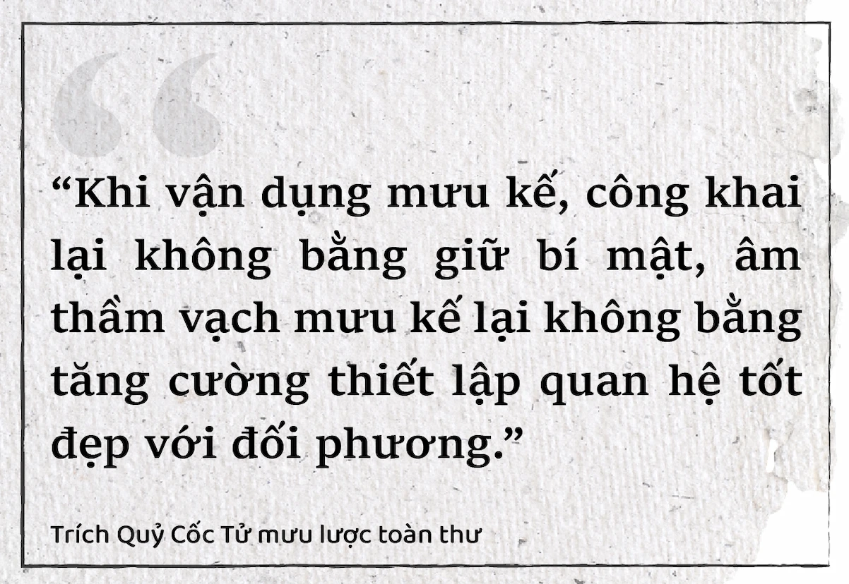Thánh nhân thường giữ kín mưu lược, còn kẻ thiếu tinh tế lại hay phô trương. Người biết kìm nén cảm xúc, không bộc lộ yêu ghét mới có thể được giao việc lớn. Việc đã mất khó khôi phục, nguy nan khó đổi thành an toàn, chỉ có vận dụng mưu lược mới tránh được rủi ro. “Phép tắc đối nhân xử thế của thánh nhân cũng tinh tế ở chỗ giấu kín”, không dựa vào hình thức đạo đức bề ngoài, mà dựa trên sự phù hợp với quy luật vận động và tính thực tiễn. Quan điểm này của Quỷ Cốc Tử có sự tương đồng với tư tưởng của nhà chính trị Niccolò Machiavelli (1469 – 1527) – tác giả của cuốn Quân Vương – Thuật cai trị, một trong những đầu sách quý thuộc “Tủ sách Nền tảng Đổi đời”. Cả hai ông đều nhấn mạnh rằng để giành thắng lợi – trên chiến trường hay thương trường – cần mưu trí, chuẩn bị kỹ lưỡng, biết giữ bí mật và vận dụng linh hoạt nguyên tắc đúng thời điểm.